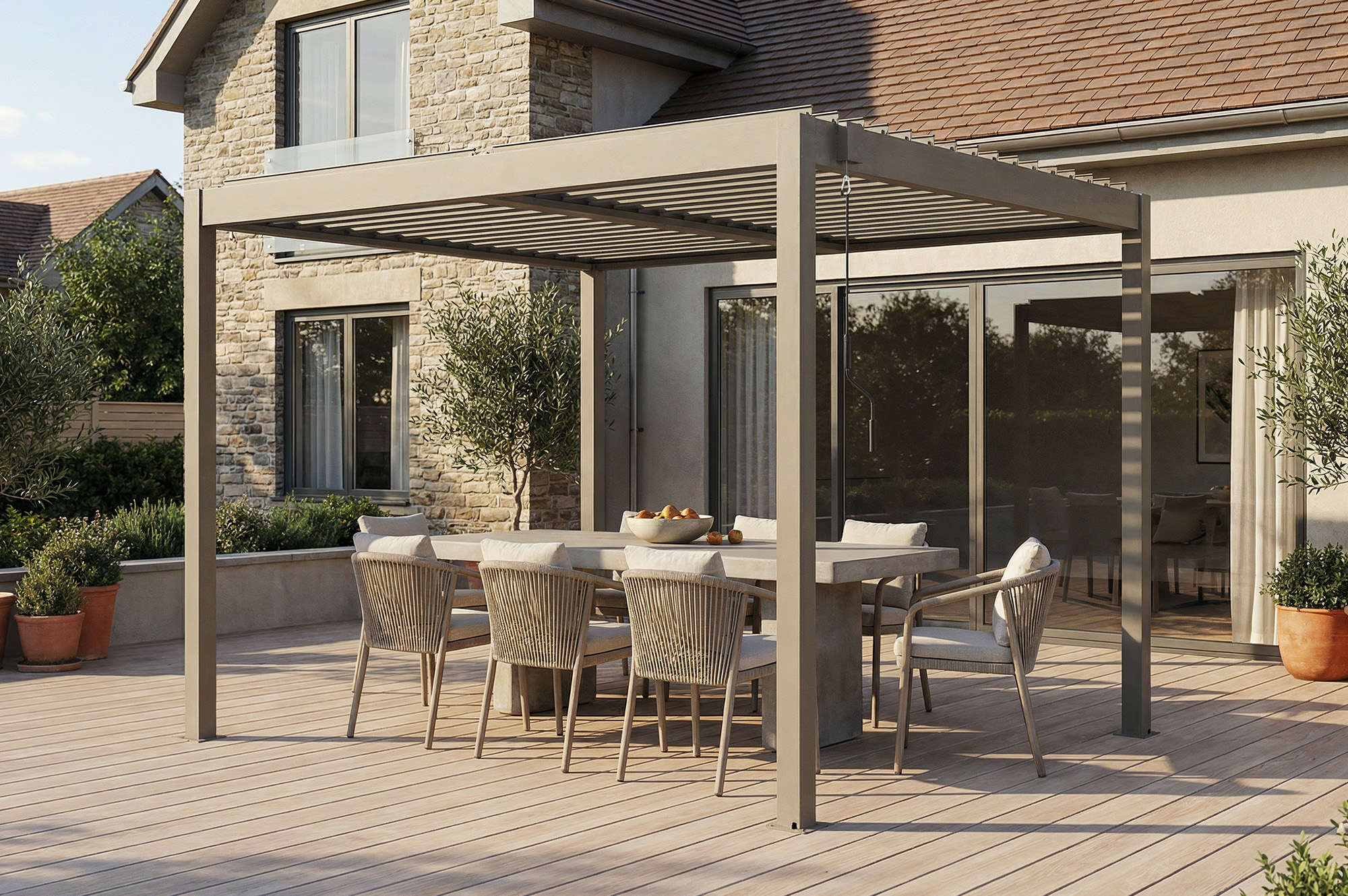 Dank der wasserabweisenden Eigenschaft können Sie Ihre Pergola auch bei leichten Schauern genießen.